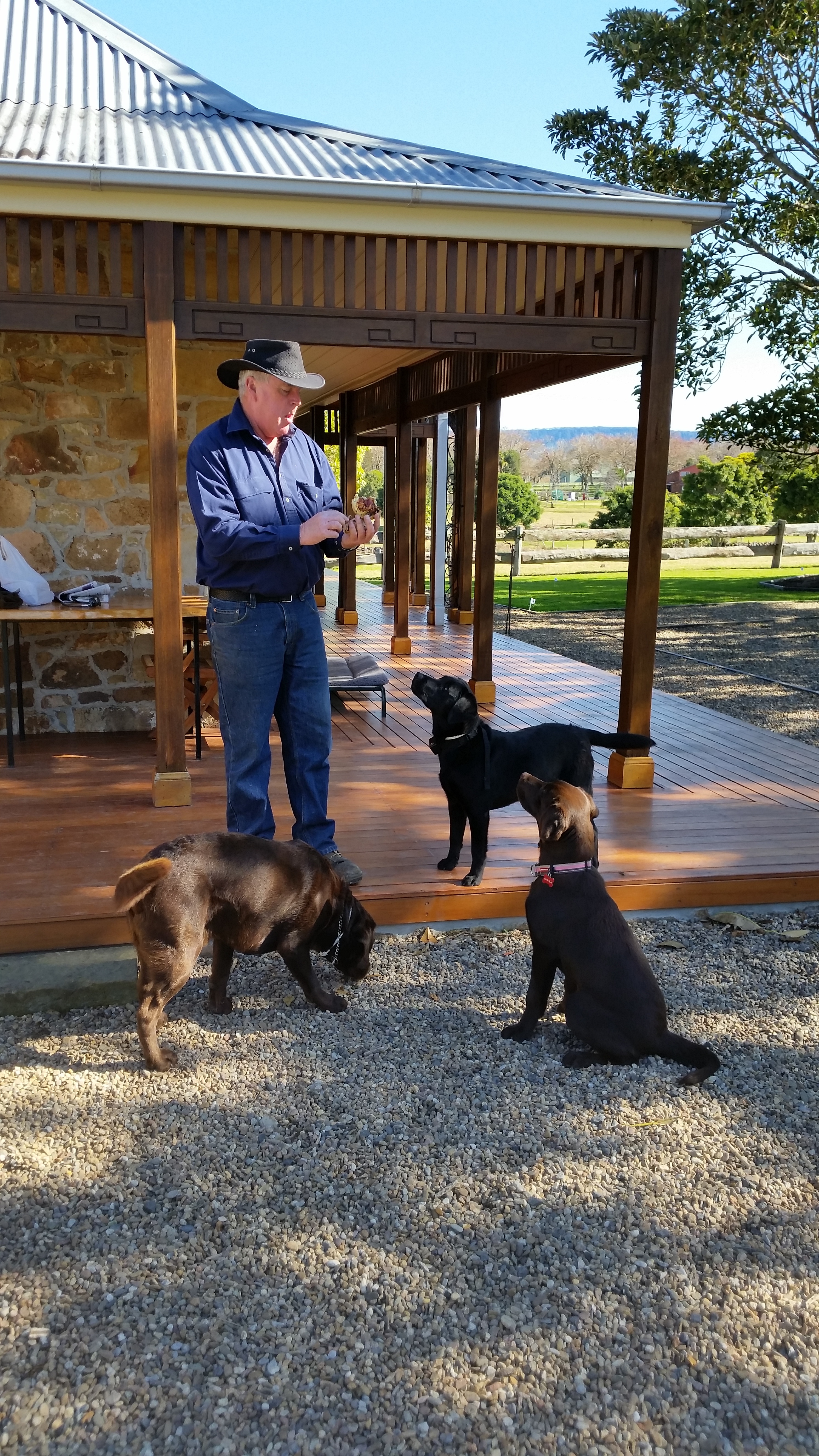 Phil “sharing” his pie with the three amigos………..(note Bailey sitting beautifully in the hope of a reward)