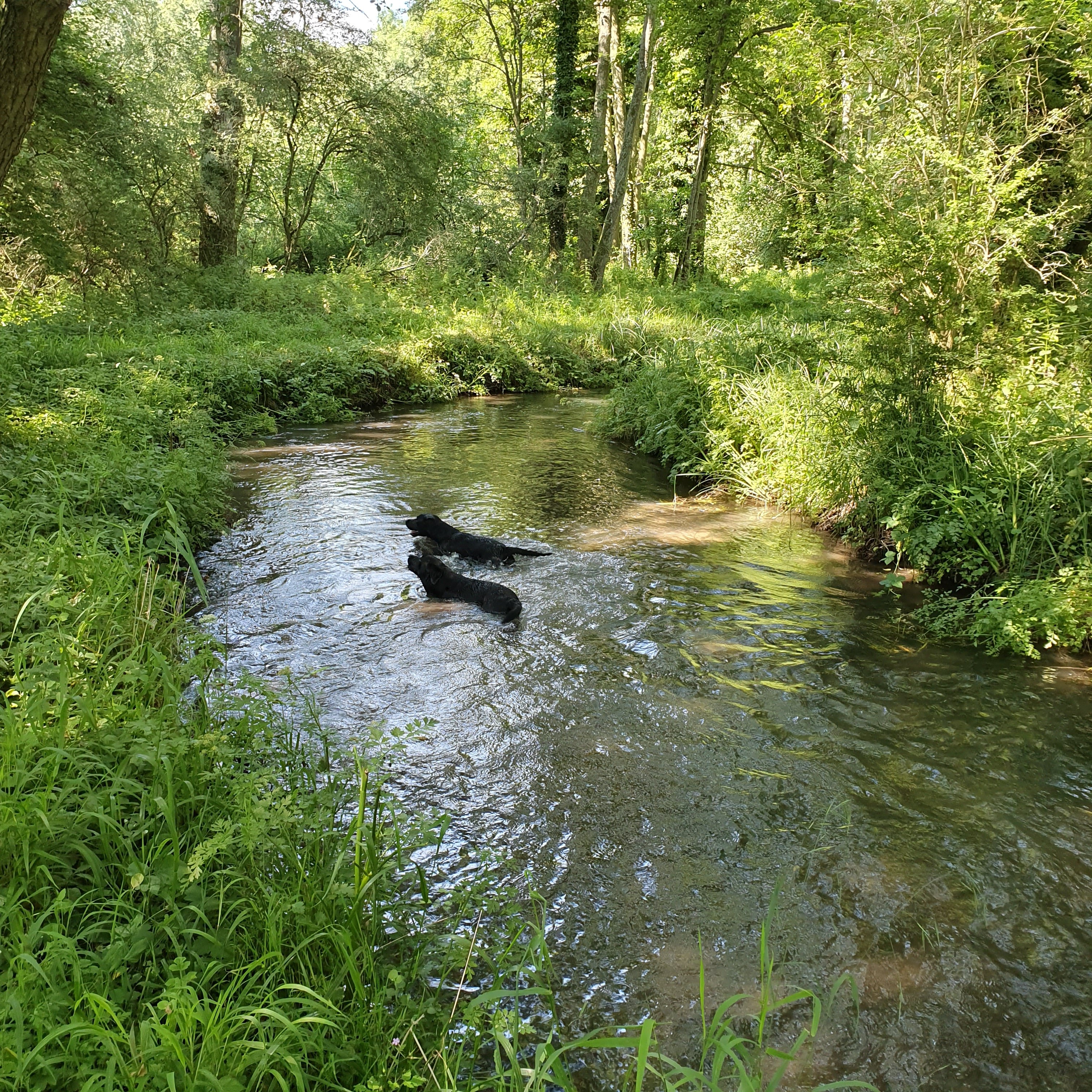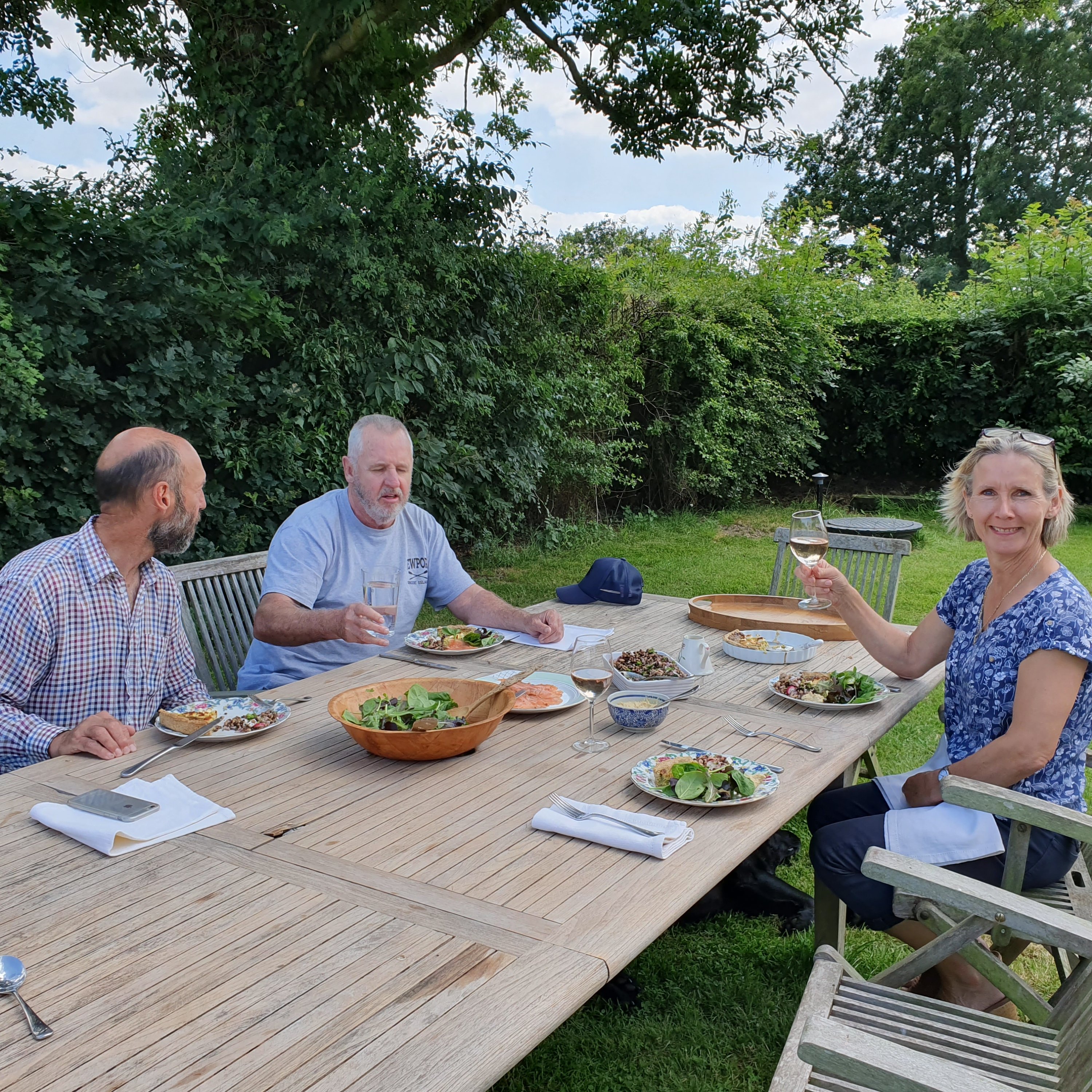 The next day we caught a train to Basingstoke in Hampshire and enjoyed a fantastic 24 hours with my old school friend Charlie and her hubby Graham. They live in a cottage on an acre of land in the countryside with their three black labs – Kiwi, Boris and Buster. It was the perfect English summers day and we had a delicious lunch in the garden before going for a walk with the dogs across the fields and through the woods. They were lush and green and dappled with sunshine and it felt so good to be back in the countryside again! I’ve missed the gentleness of the English woods.