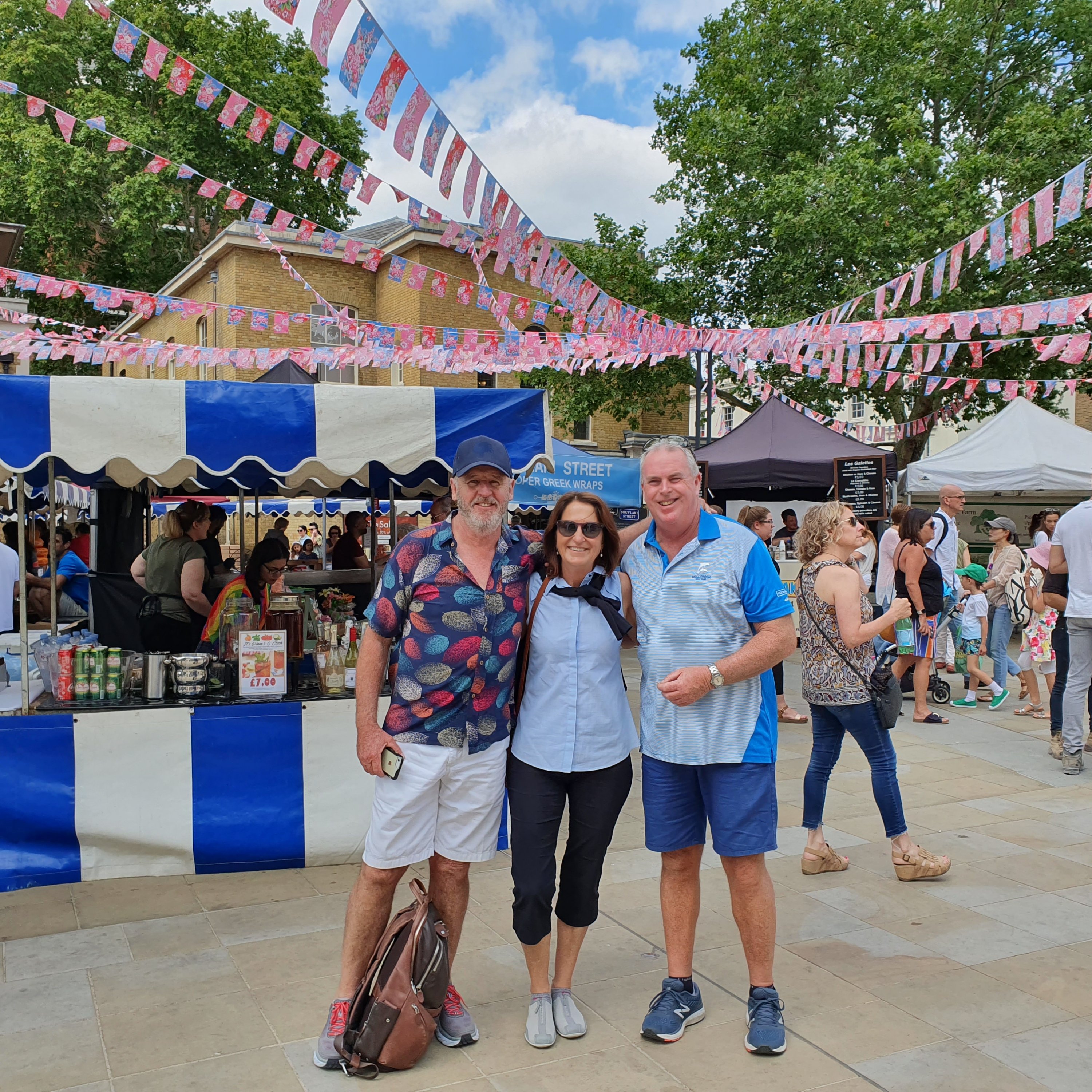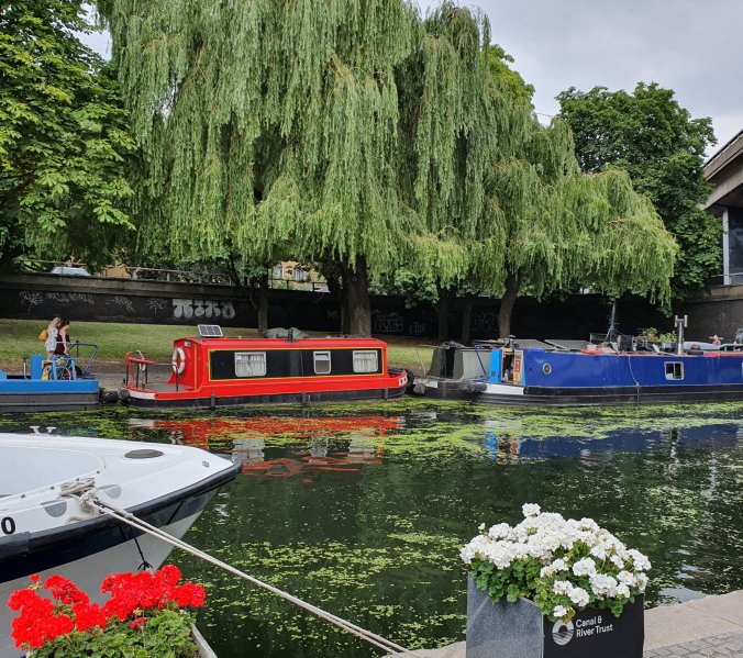 The following night we tried to get tickets to one of the West End shows but with our last minute planning we could only get 3 tickets sitting together to see Matilda, a book/film we had all loved when the kids were small. Being in Covent Garden with the quaint pubs laden with hanging baskets brimming with flowers and wandering through colourful Neal’s Yard with its amazing cheese shop was something I haven’t done for 30 odd years. The show was a great version of the book with a few standout parts stealing the show but I think Tom felt a bit odd at 29 years of age being at a show with so many little kids!!! It was Pride Weekend in London and there were rainbow flags everywhere, gazillions of people ready to party and a happy vibe throughout the Capital. Our Aussie friends had arrived a few days previously and we arranged to meet them at The Duke of York fine food market in Chelsea for brunch and then a wander around Little Venice, a little known area in London which is home to canal boats and a quieter side of London Life. After a pub lunch we stupidly relied on Cammo and his phone directions to take us somewhere interesting which was a grave mistake as we ended up in the middle of a 6 lane motorway from which only Uber could save us…..