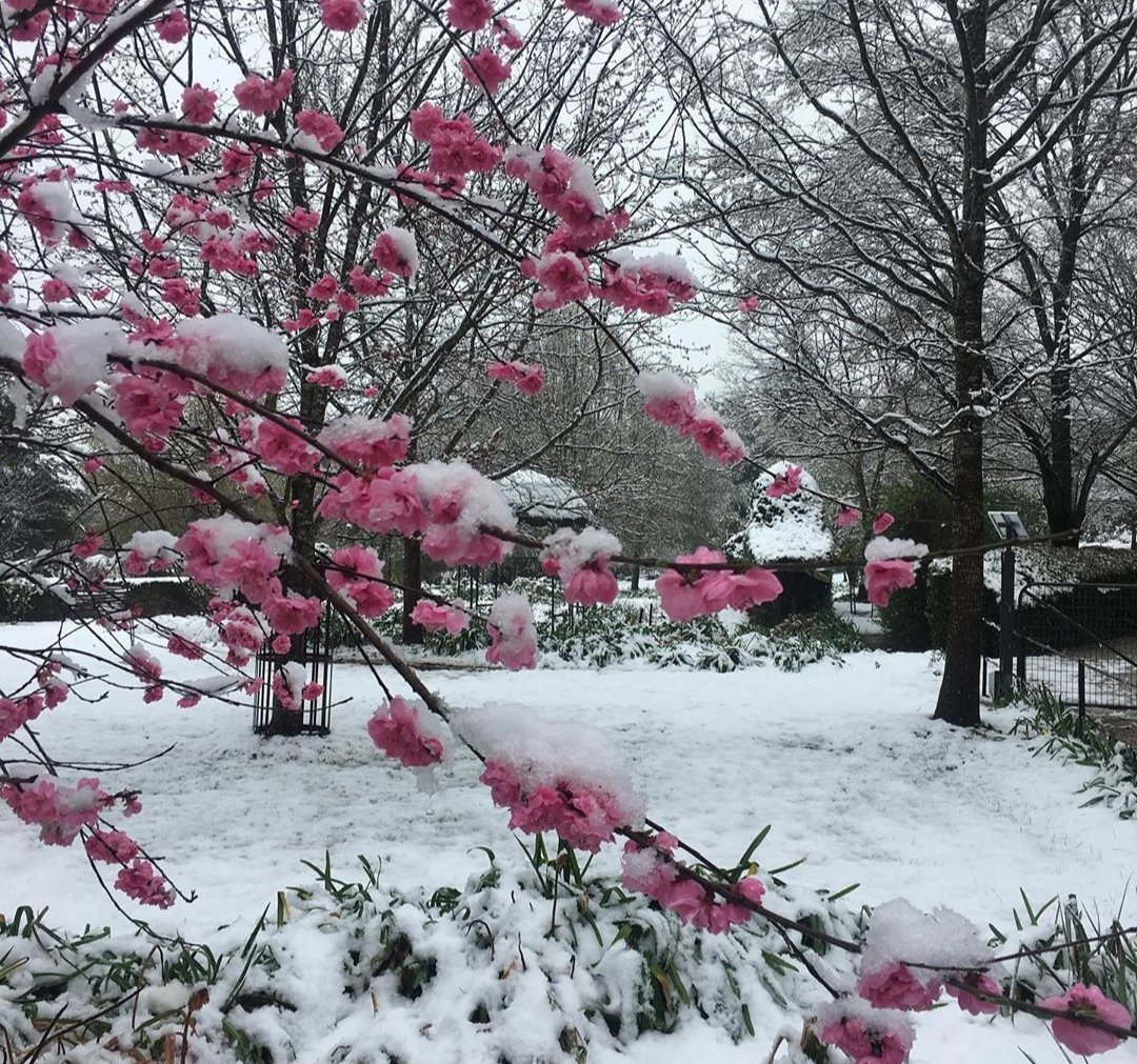 The weather here has been strange to say the least. We have had the odd day in the mid to high 20’s when thoughts turned to putting away the winter woollies and baring the legs once again but then the temperature plummeted and we got three very welcome inches of rain with snow falling on the high ground! Rather odd to see snow laden cherry blossoms! We have been able to make the most of the damp soil to pluck out a gazillion weeds and transplant flowers while the soil is receptive. Our lovely friends Wayne and Kathy came to stay bringing with them a gigantic bucket of clivea from their garden. She had read my comment in the last blog post and now just like magic I am the proud owner of flowers around my pear trees after all! We had a huge old clump of the creamy pale yellow clivea tucked out of sight next to our woodshed so I dug them out and planted them in between the others and hopefully they will thicken up in the next few months and provide some low maintenance colour in the garden. The few flowers that broke off are now adorning our table!