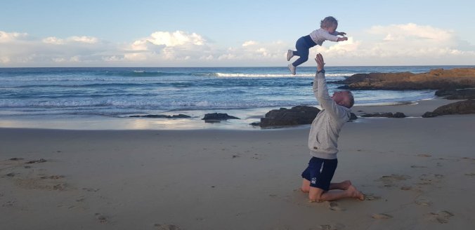 They decided to make the most of their current suituation and go on a little road trip down the South Coast. As it is winter and wasn’t school holidys for another week or so they had no problems booking themselves a family cabin at various picturesque beachside parks. Wallabies at their door, firepits and the ocean a few metres further away and miles of sand for Myla Moo to explore. She does love eating the stuff which makes for some very gritty nappies but mostly she just loves to run around and seems to have inherited her parents love of the great outdoors.